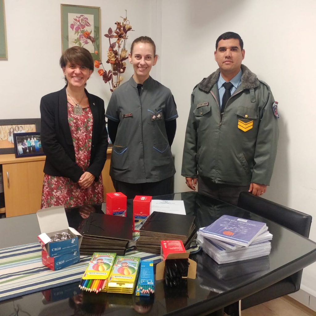 El jueves 28 de junio la Delegada Regional Posadas de la Universidad de la Cuenca del Plata, Abog. Laura Jacobacci, recibió en su despacho de la Alta Casa de Estudios – sita en Barrufaldi 2364 de la ciudad de Posadas- a autoridades del Servicio Penitenciario Provincial en el marco se realizó la entrega de una donación compuesta por insumos escolares a ser utilizados en las diferentes unidades penales.