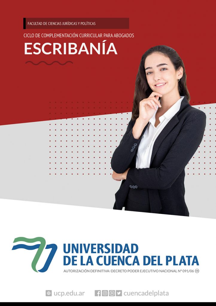 La Universidad de la Cuenca del Plata, a través de la Facultad de Ciencias Jurídicas y Políticas, mantiene abierta la inscripción para Escribanía. Se trata de un Ciclo de Complementación Curricular destinado a abogados, mediante el cual podrán obtener el título de Escribano Público Nacional.